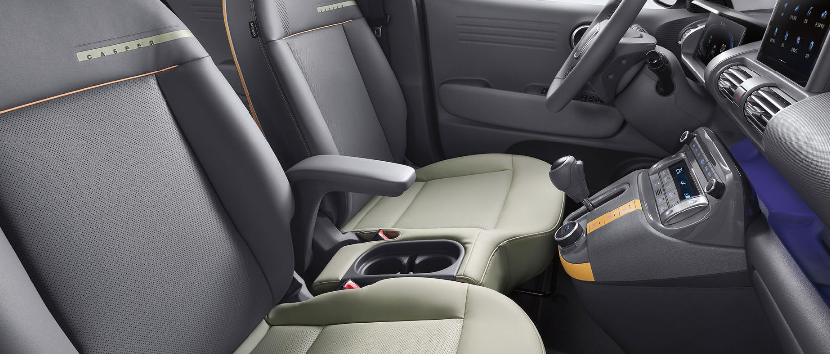 슬림하면서도 간결한 레이아웃 운전 공간은 개방감을 한층 높여주는데 디자인은 레이와 비슷한 형태로 되어 큰 특이점은 없지만 보조석과의 이동이 가능하며 감성을 자극하는 무드램프 추가로 야간에 차박하면서 더욱 특별한 분위기를 더해줄 듯하다.