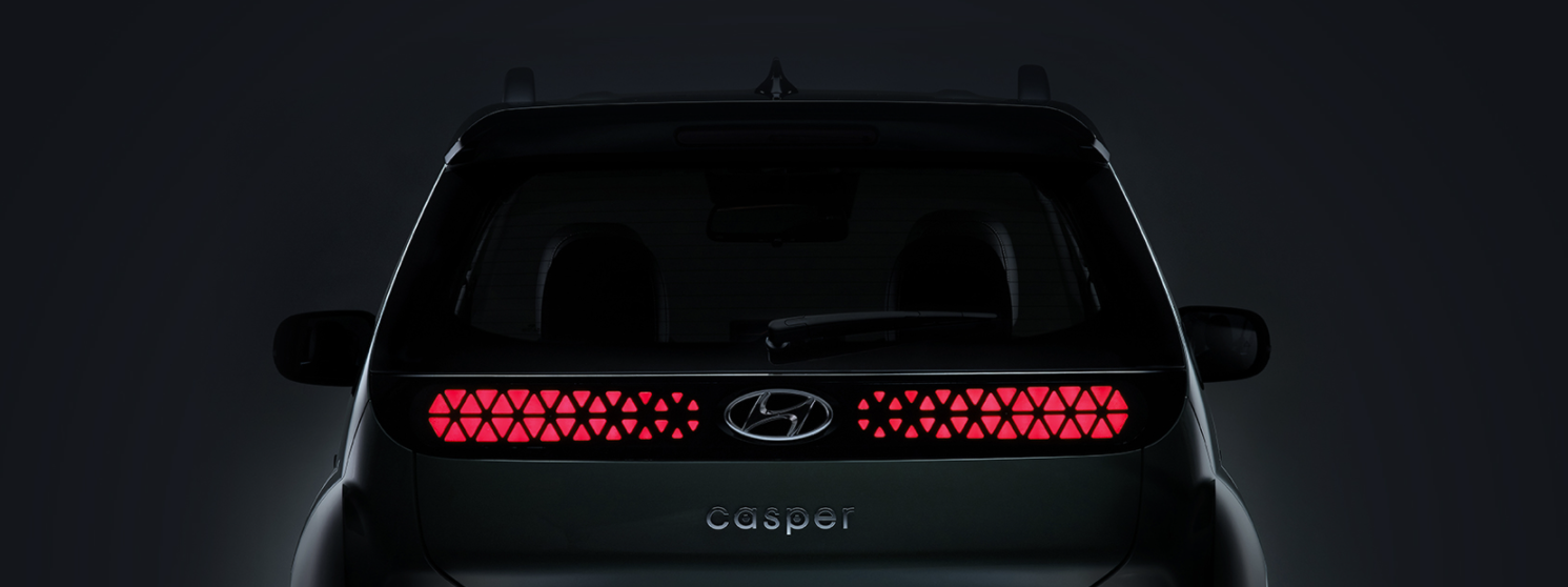파라메트릭 패턴이 적용된 라디에이터 그릴로 미래지향적이고 개성있는 스타일을 연출하며 독특한 라이팅 세레머니로 분리형의 독특한 원형 헤드램프가 캐스퍼만의 유니크함을 느끼게 해준다. 전면부와 같이 파라메트릭 패턴의 후방 리어콤비램프로 야간에도 확실히 존재감을 보여준다.