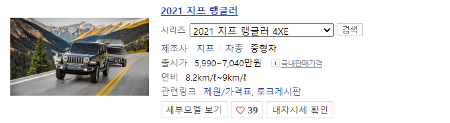 국내에서는 오프로드용 SUV를 '짚차' 라고 할 정도로 지프는 오프로드의 대명사로도 쓰인다. 한 번쯤은 차량을 소유해보거나 모래밭과 자갈밭을 넘나드는 로망을 한번쯤은 꿈꿔봤을 것이다. SUV 대명사 지프에 대해 소개해보고자 하며 가격도 소개해보고자 한다.